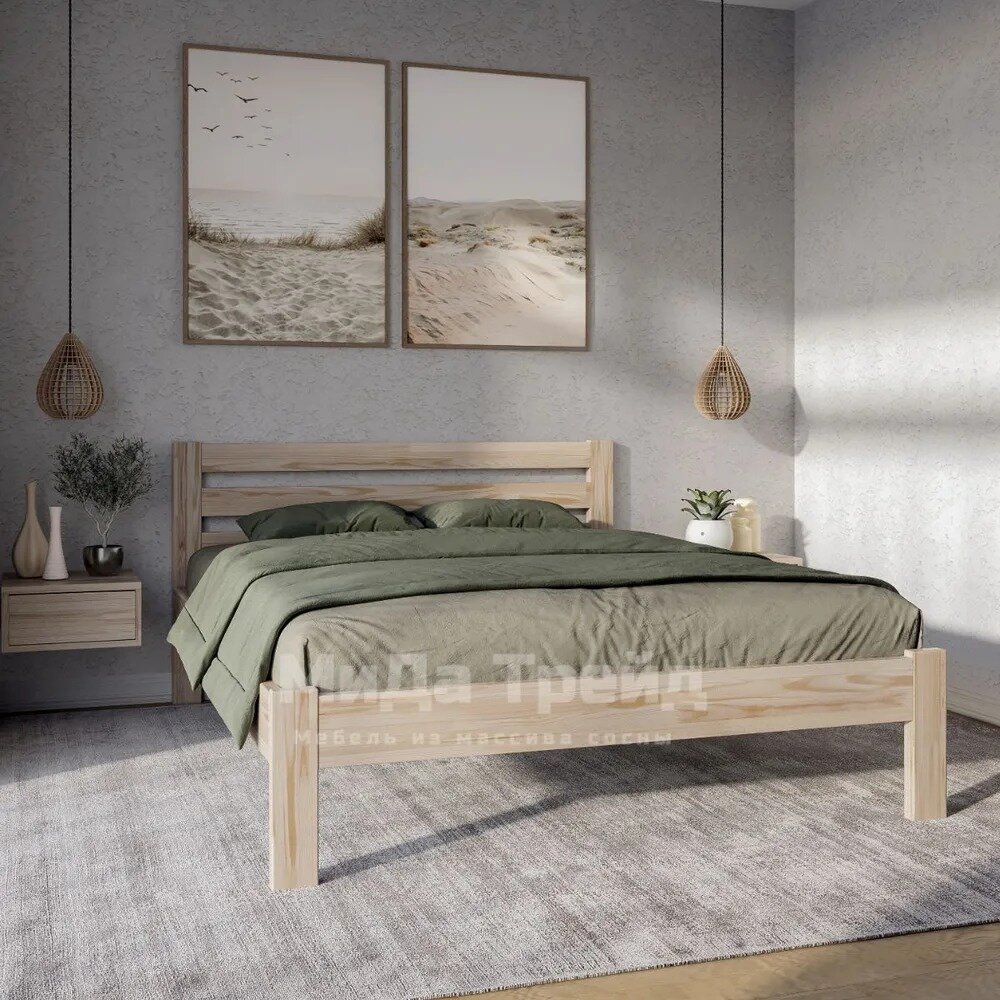 10 цен на Кровать двуспальная деревянная 200х200 см "Амелия", массив сосны, без покраски МиДа-Трейд