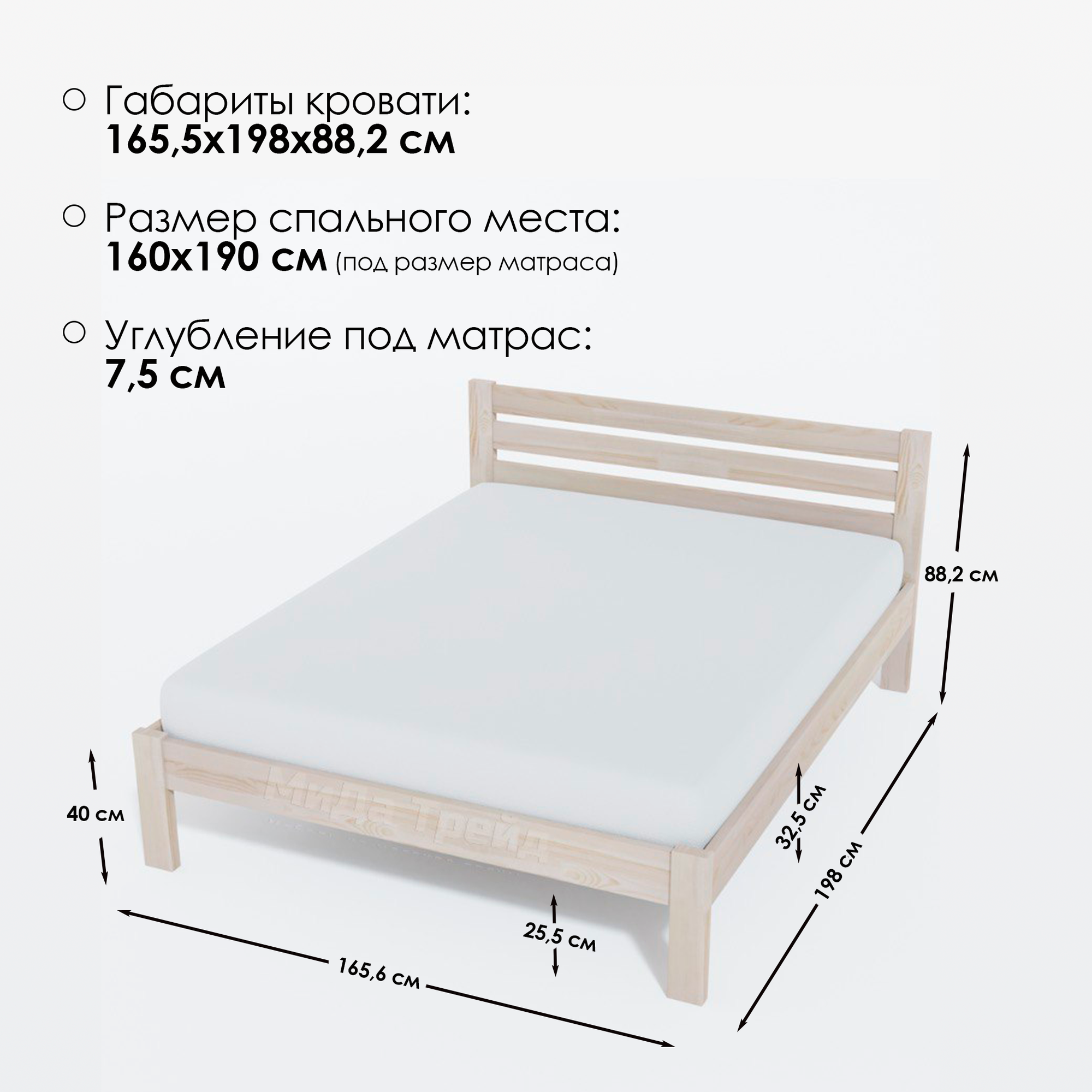 Кровать двуспальная деревянная 160х190 см "Амелия", массив сосны, без покраски МиДа-Трейд информация: