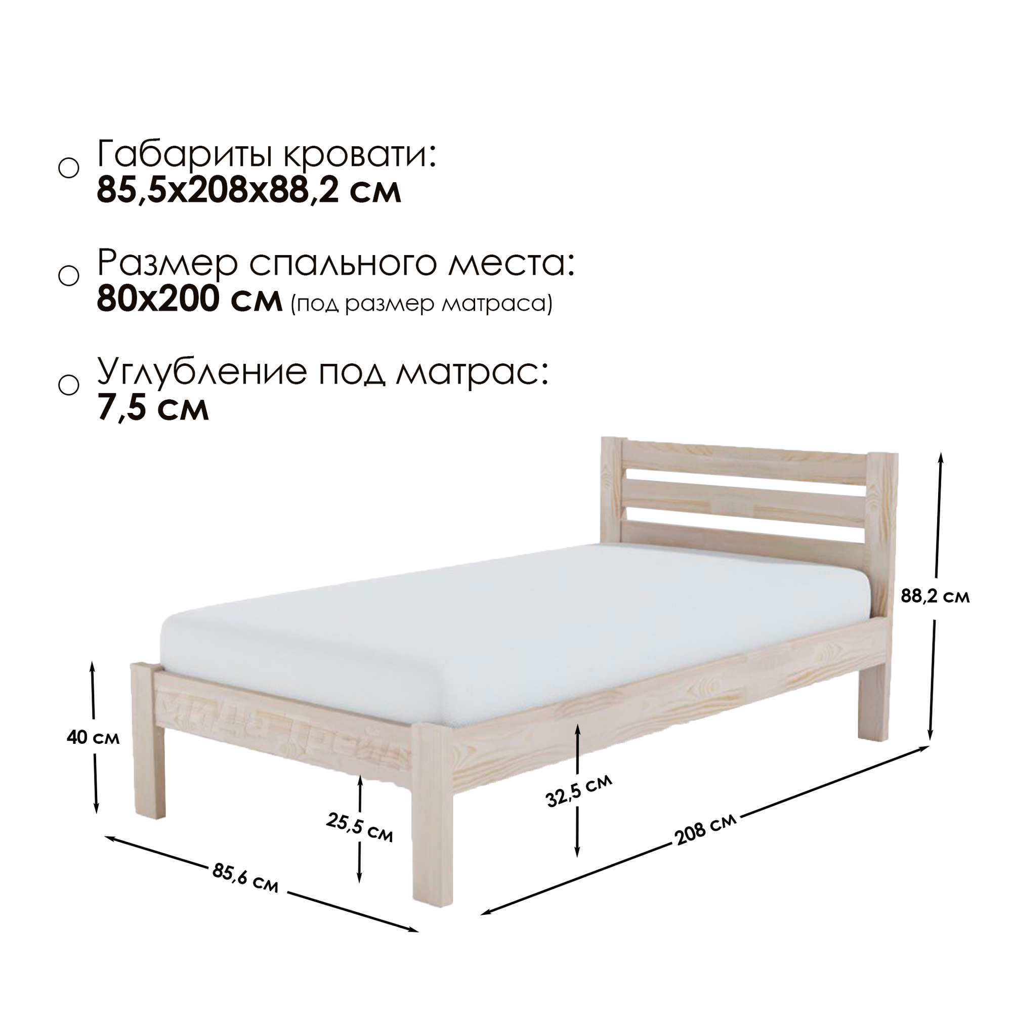 | Высота кровати | 88 см |