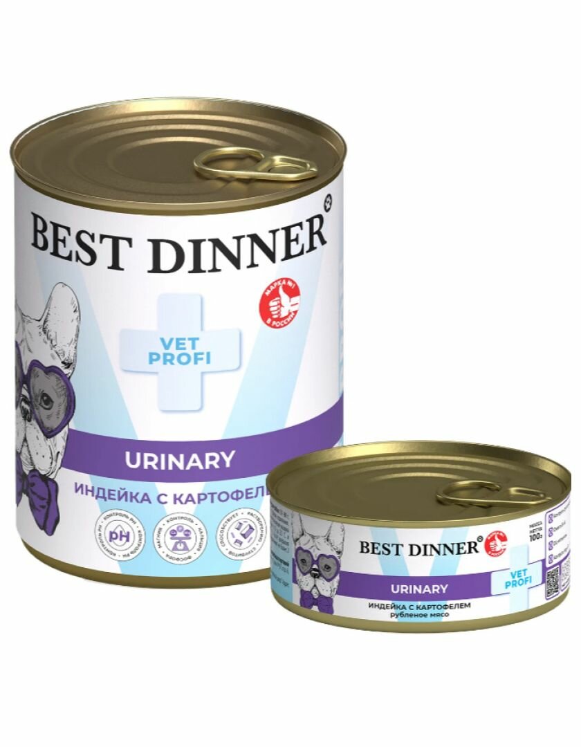 Влажный консервированный корм для собак Бест Диннер Best Dinner Urinary "Индейка с картофелем" Exclusive VET PROFI 100 гр. По 24 шт