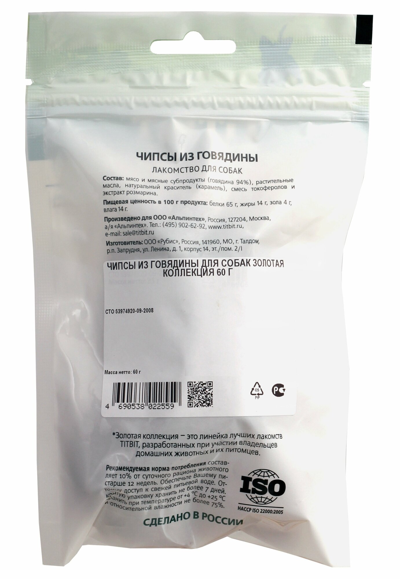 TiTBiT Золотая коллекция Чипсы из говядины для собак 22559 0,06 кг 57342 информация: