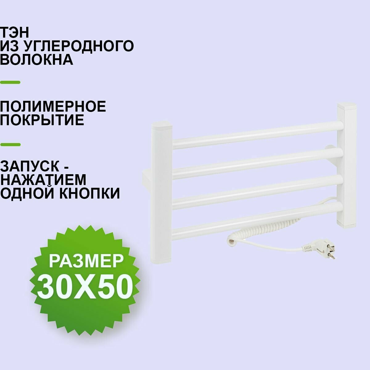 Полотенцесушитель электрический белый лесенка, 300 х 500 х 85-95 мм, на 4 перекладины, 95 W, из алюминия, тэн из углеродного волокна 6 607 ₽