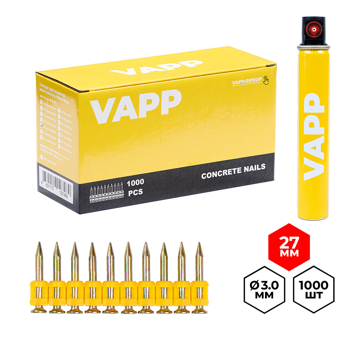 Гвозди по бетону VAPP 3*27 мм усиленные для монтажного пистолета и газовый баллон 165 мм информация: