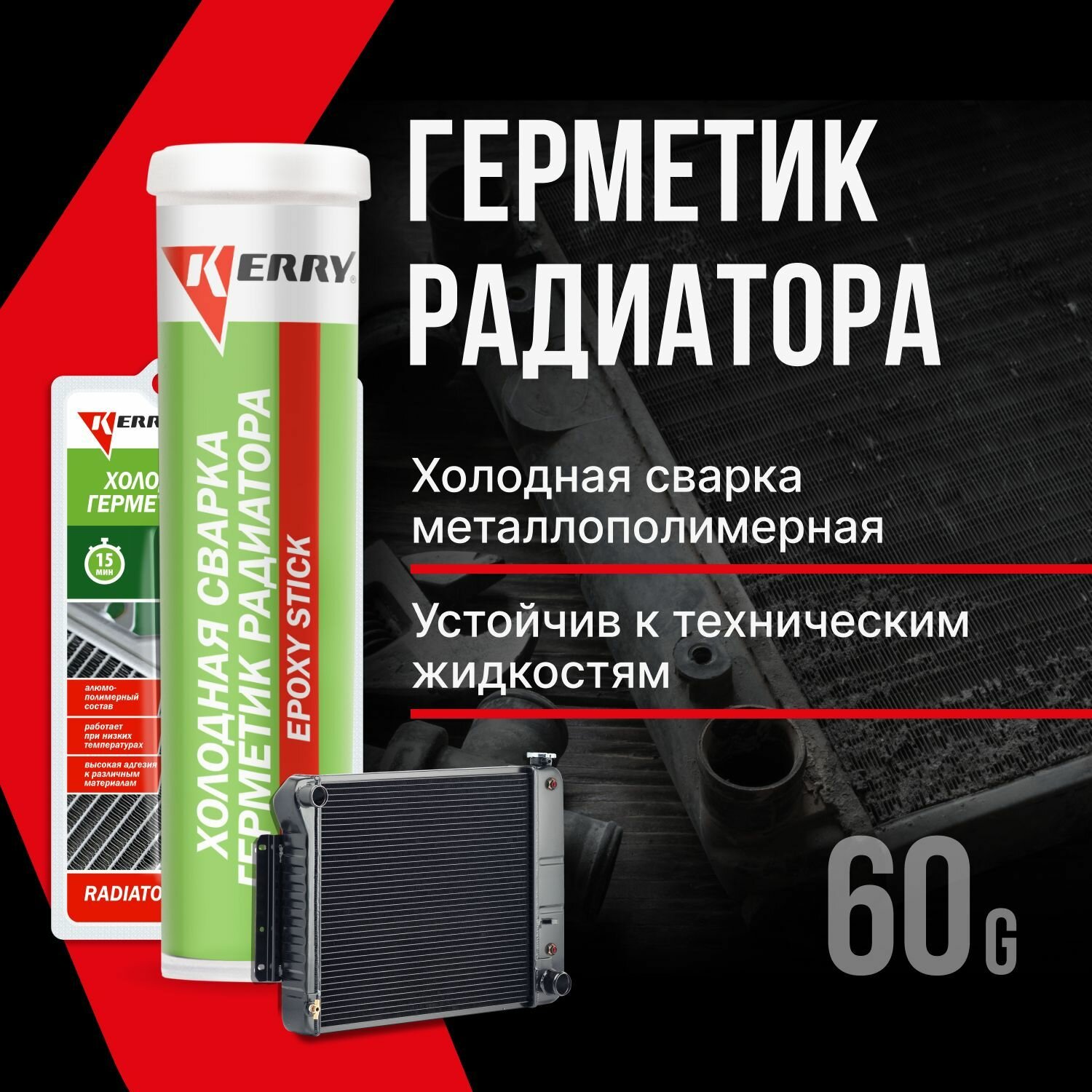 Герметик радиатора (металлопластилин) (блистер) 60гр. KR-125-1 Kerry информация: