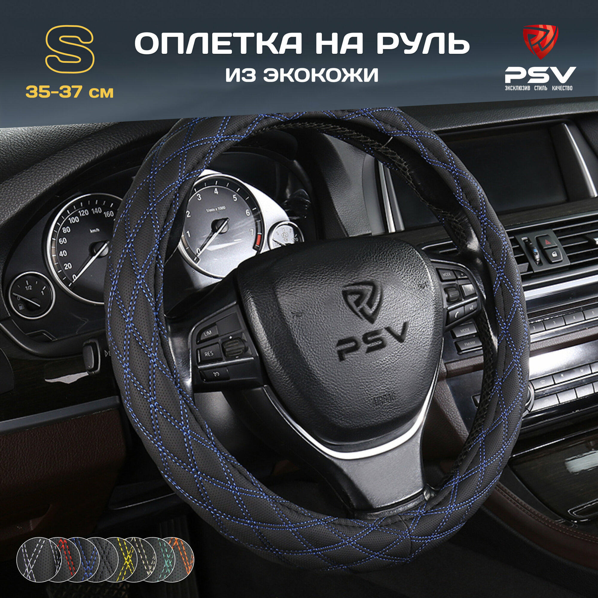 Оплетка чехол на руль PSV RADIKAL (Черный/Отстрочка синяя) S, экокожа 136043 информация: