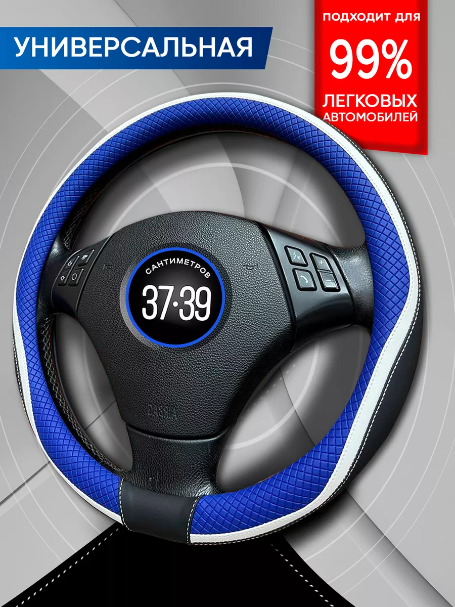 10 цен на Оплетка на руль 37-39 см, теплая универсальная синяя