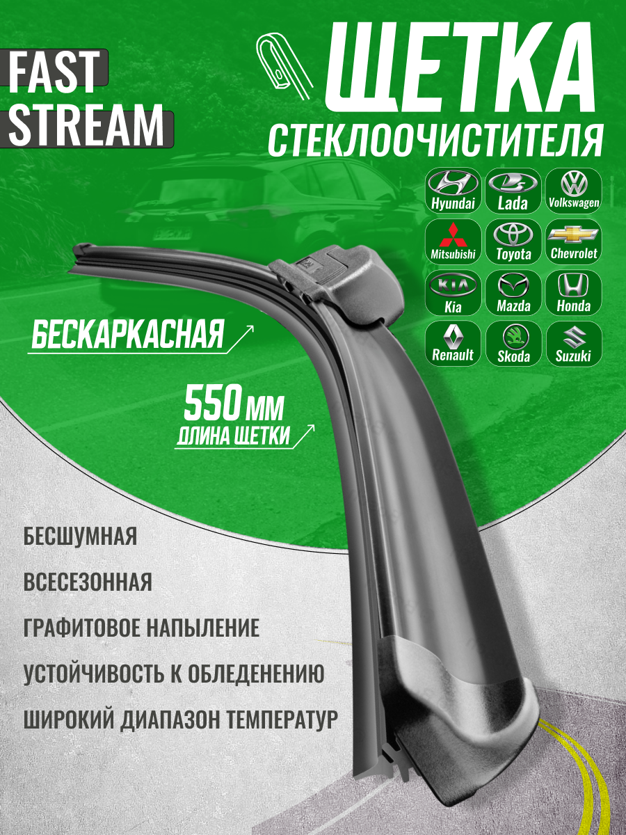 Отзывы на Щетка стеклоочистителя бескаркасная Fast stream 22/55, графитовое покрытие