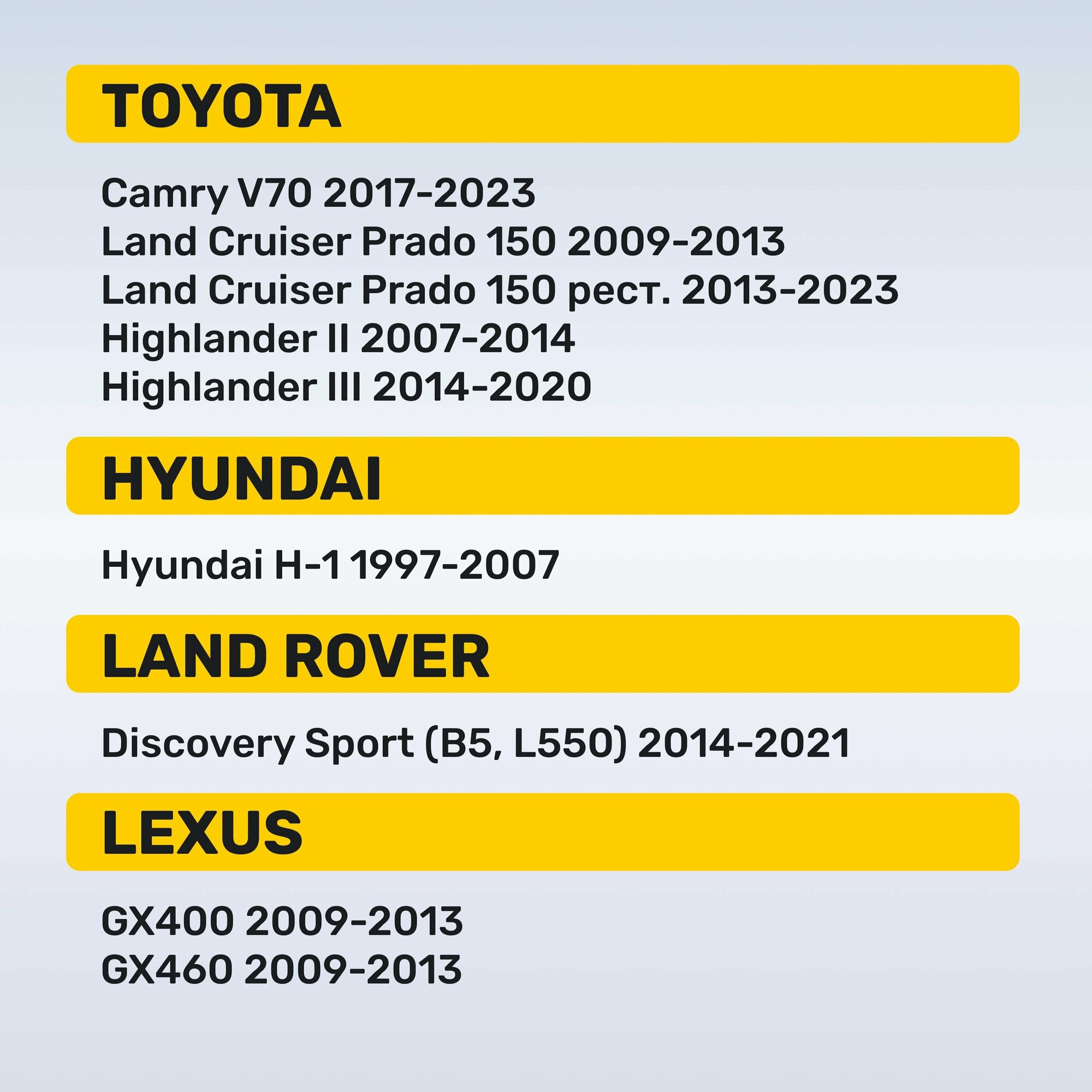 (Германия) 650/500, Дворники Камри 70, Прадо 150, Хайлендер, Дискавери Спорт, Лексус GX460, Хендай H-1 информация: