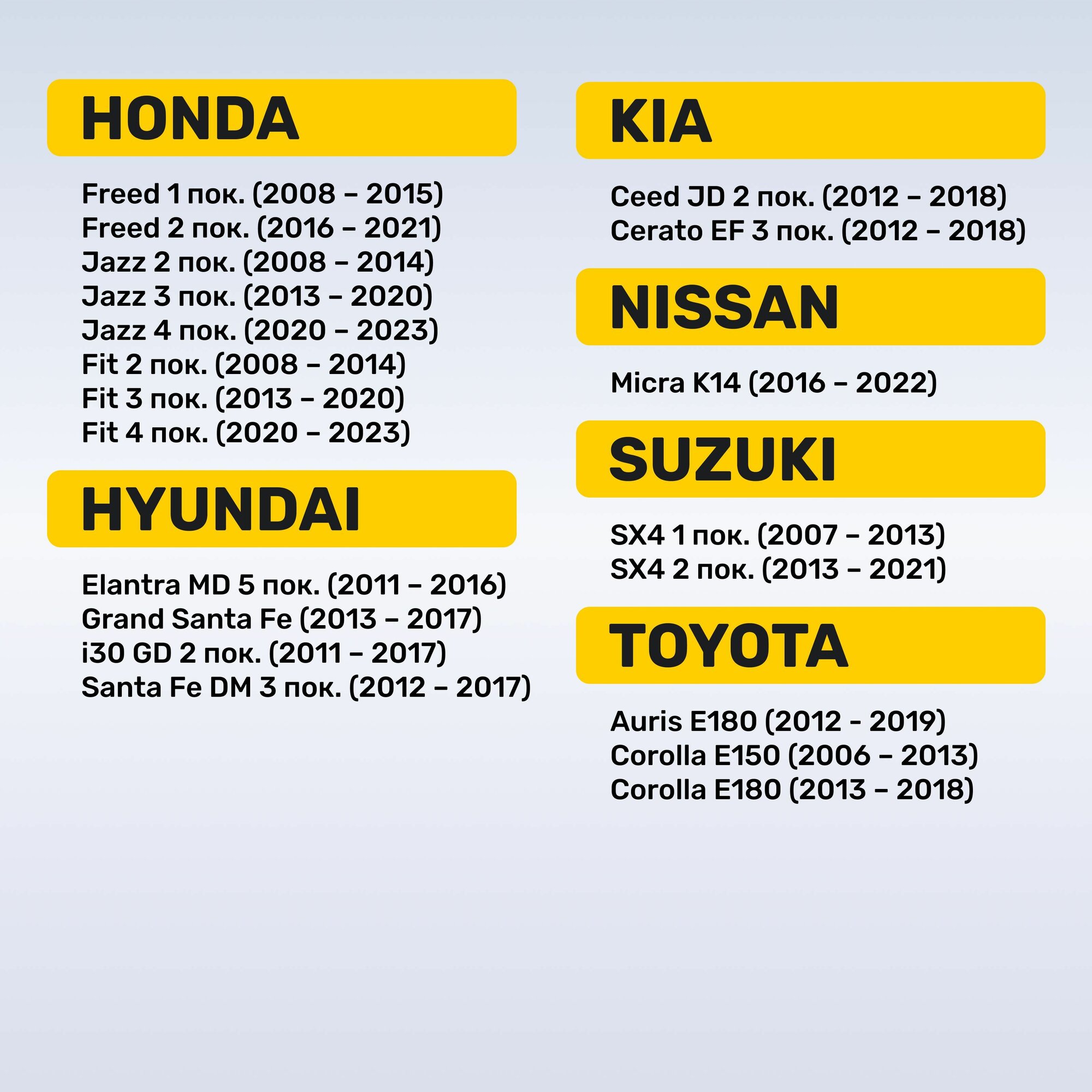 (Германия) 650/350, Дворники Королла Е150-Е180, Элантра МД, Санта Фе 3, Сид 2, Церато 3, Ай 30 (2011-2016) Хонда Фит SX4 информация: