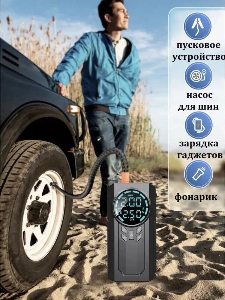 Пусковое устройство для автомобиля Carzilla / 20 000 мАч, пусковой ток 3000А / 4в1: ПЗУ, компрессор, powerbank, LED-фонарь