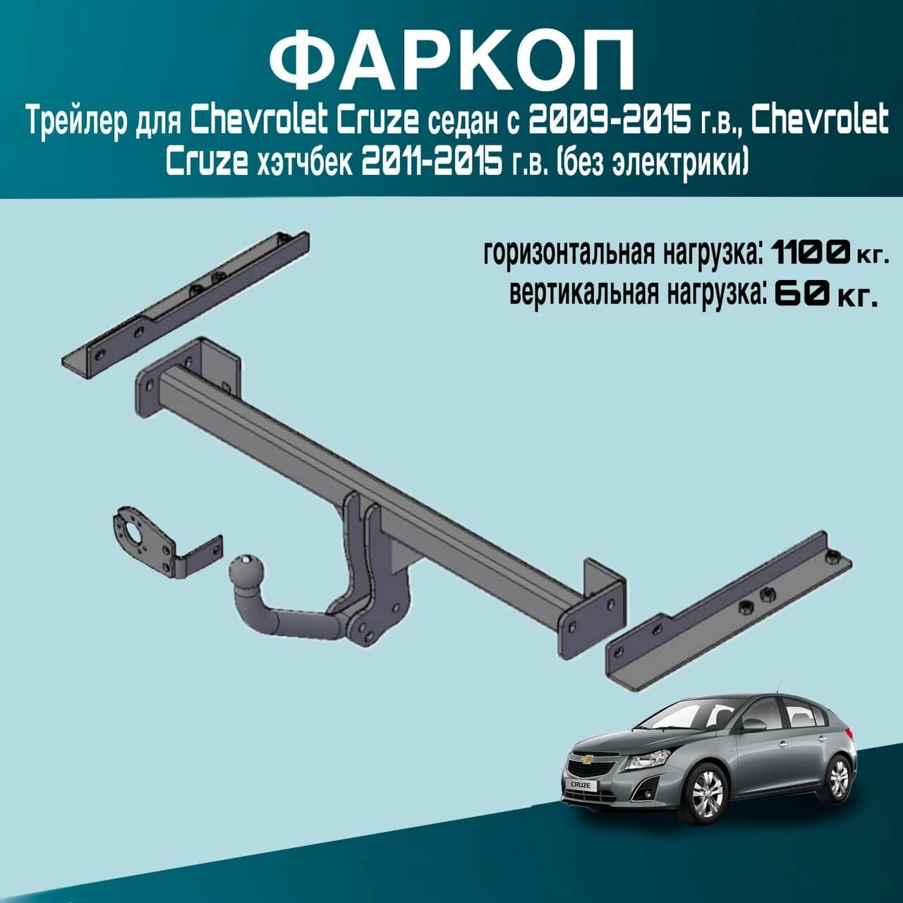 Фаркоп Трейлер для Chevrolet Cruze седан с 2009-2015 г.в., Chevrolet Cruze хэтчбек 2011-2015 г.в. (без электрики) информация: