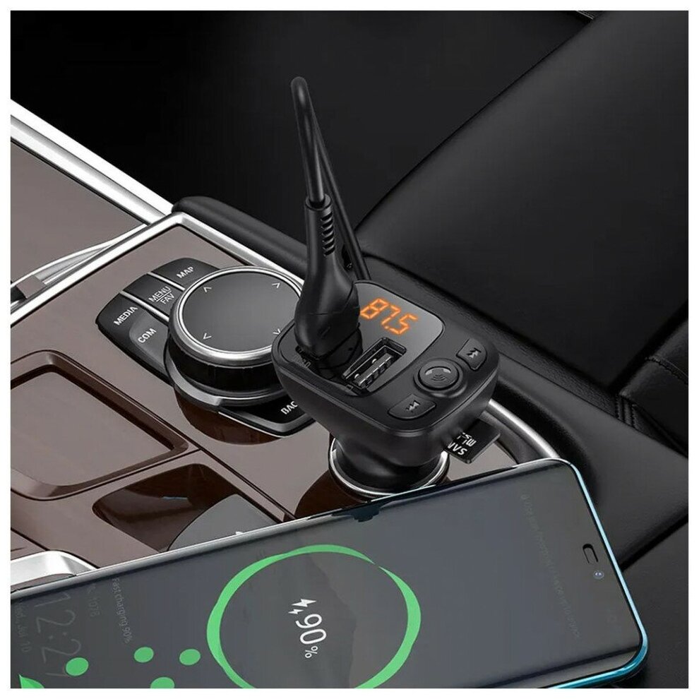 Автомобильный FM-трансмиттер S-21, черный, с дисплеем, Bluetooth, USB