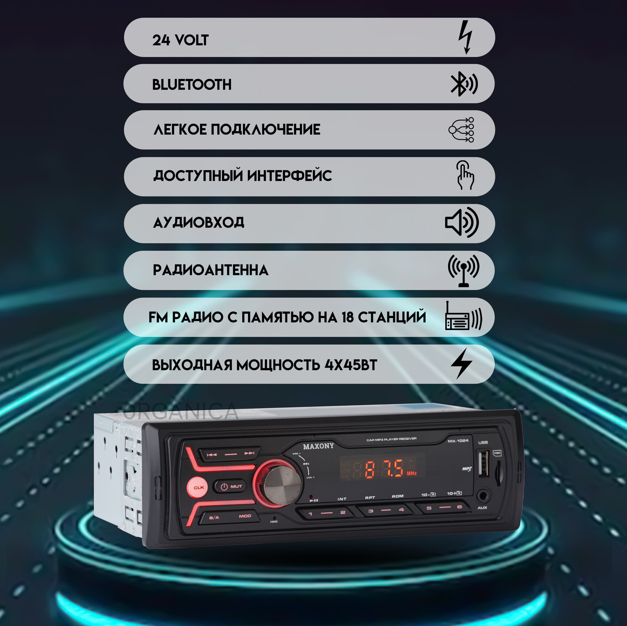 Автомагнитола 24 Вольт для грузовика с Bluetooth USB AUX 24в информация: