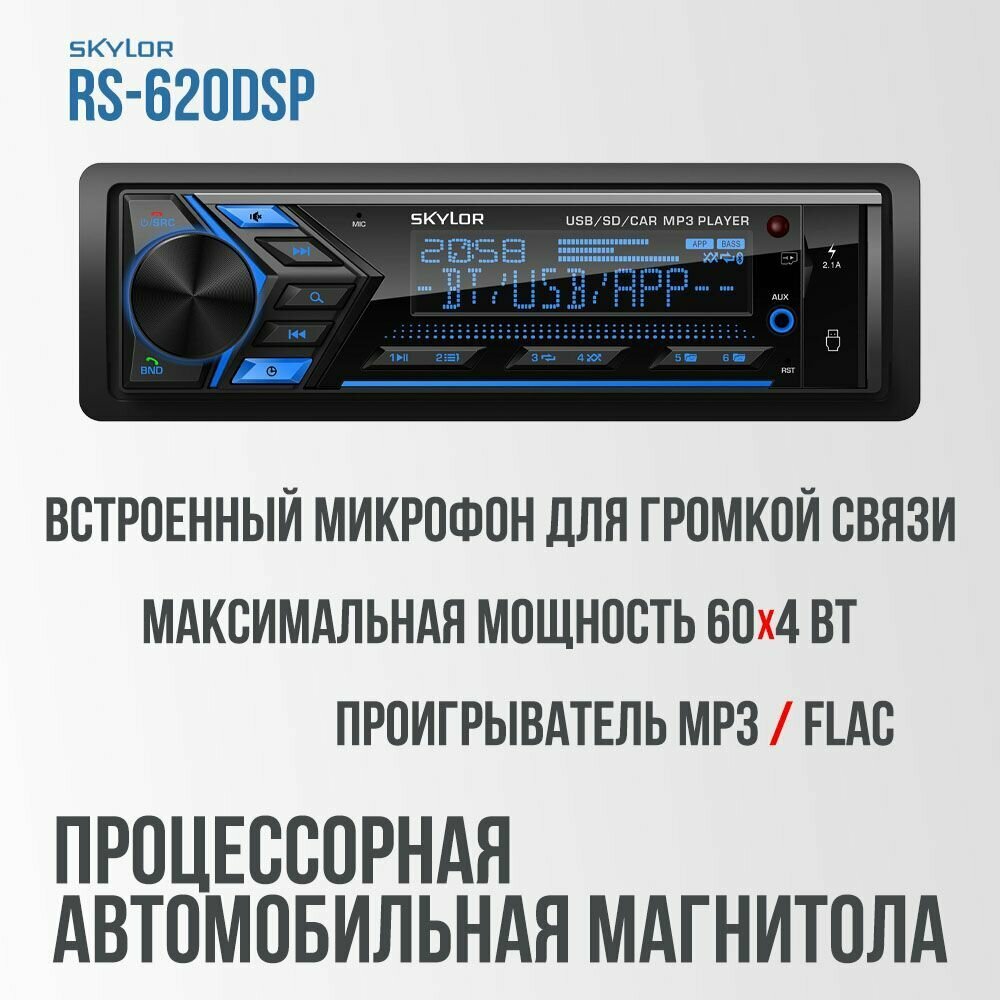Автомагнитола 1din с процессором SKYLOR RS-620 DSP с поддержкой Bluetooth, MicroSD информация:
