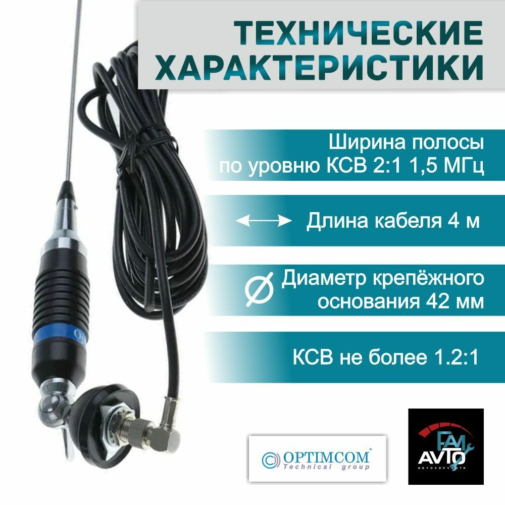 Антенна автомобильная Optim CB 1100, 1080 мм для радиостанции 27 МГц длина штыря 950 мм информация: