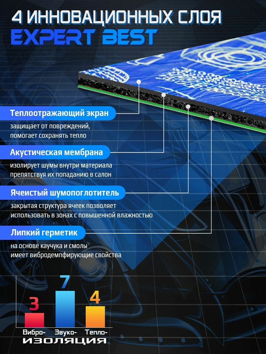 Шумоизоляция для автомобиля DreamCar Expert Best 7 68*50 см, 10 листов, шумка для второго слоя 4 300 ₽