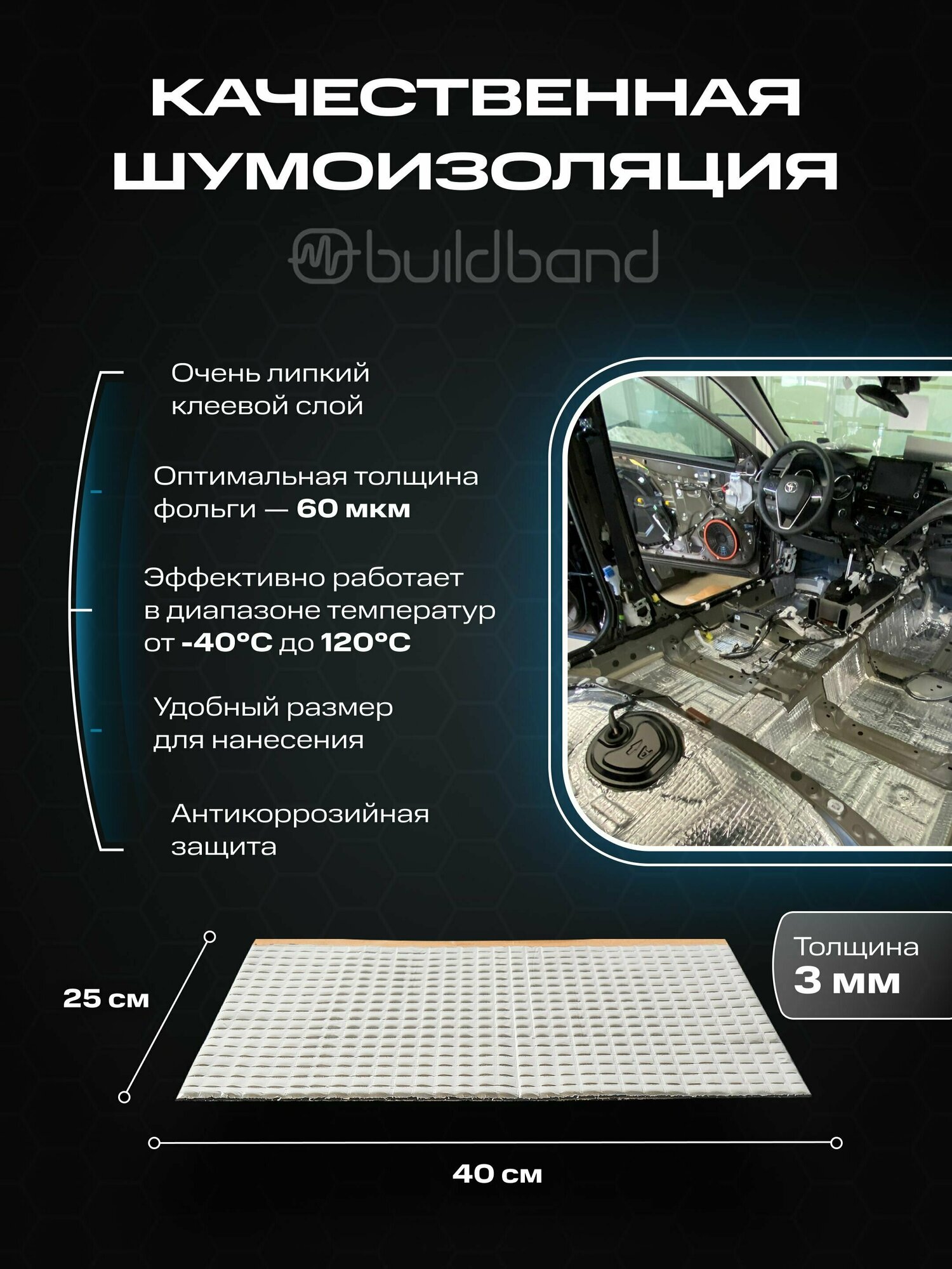 Шумоизоляция buildband ECO 3, комплект 10 листов/ Шумка для машины самоклеящаяся/ звукоизоляция 1 121 ₽