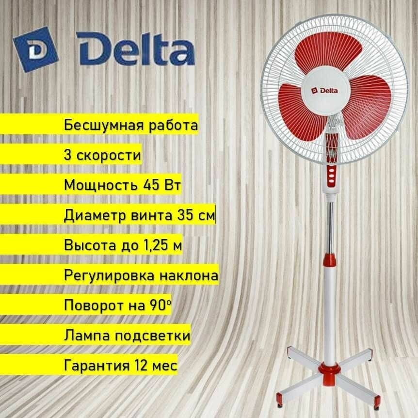 Вентилятор напольный DELTA DL-003N белый/красный информация: