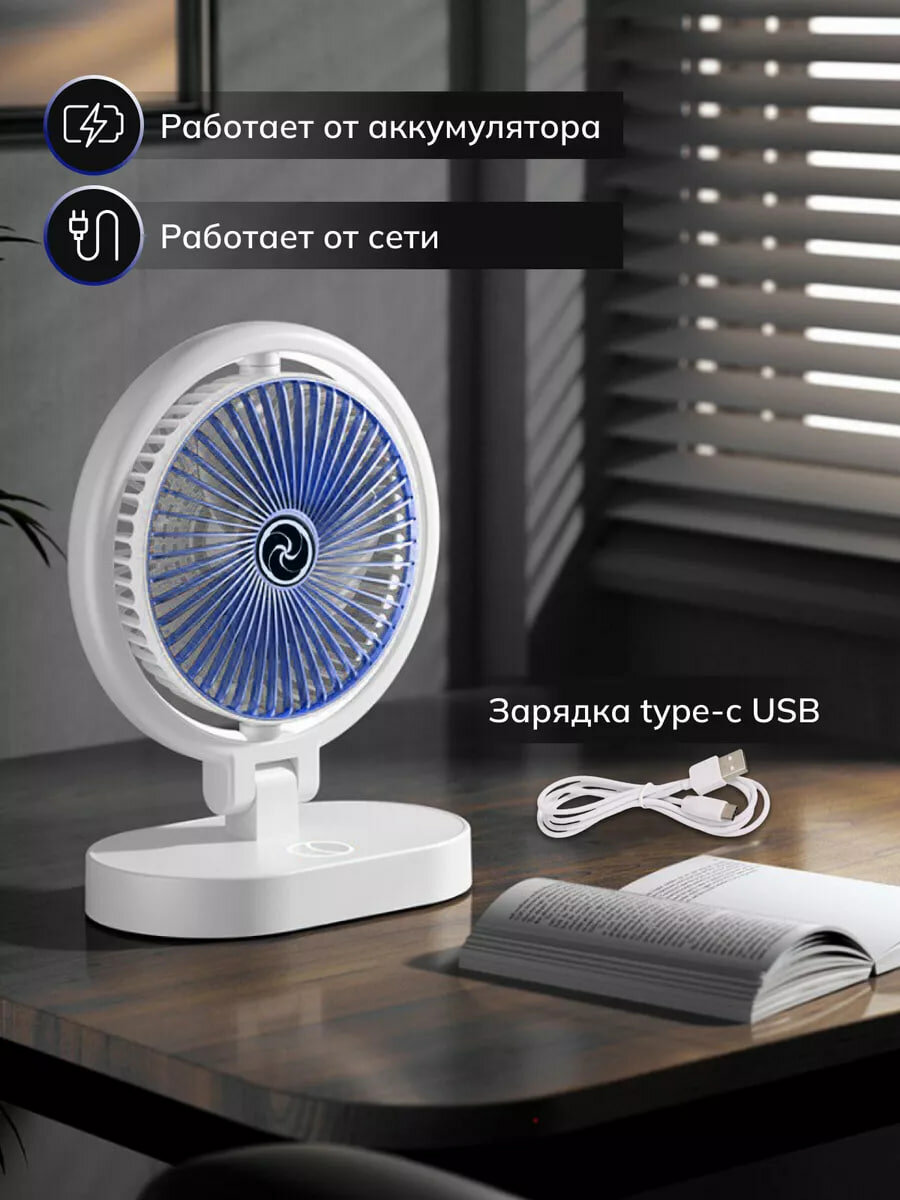 Вентилятор Power bank, складной, портативный, 5 скоростей работы, 3000 мАч, белый