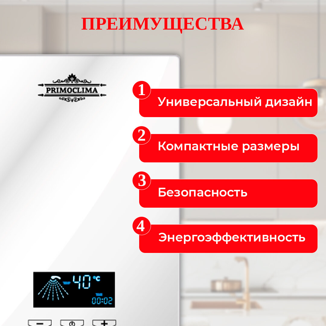 Электрический проточный водонагреватель PRIMOCLIMA VITA 8.5 кВт, белый информация: