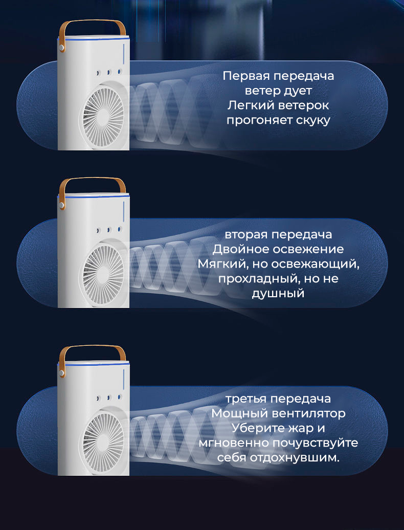 Мини-кондиционер, беспроводной увлажнитель воздуха с двумя вентиляторами, пультом управления и ночной подсветкой информация: