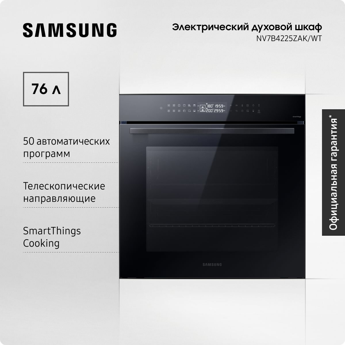 Отзывы на Электрический духовой шкаф для кухни Samsung NV7B4225ZAK/WT 76 л, с конвекцией, 50 автопрограммами, телескопическими направляющими, сенсорным управлением, таймером и защитой от детей, черный