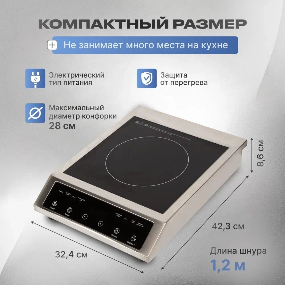 Индукционная плита настольная, 3500 Вт, Безимпульсная, Для дома и дачи, Для самогоноварения информация:
