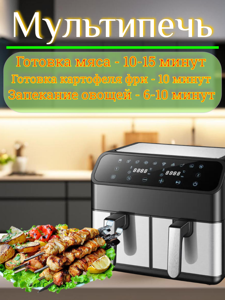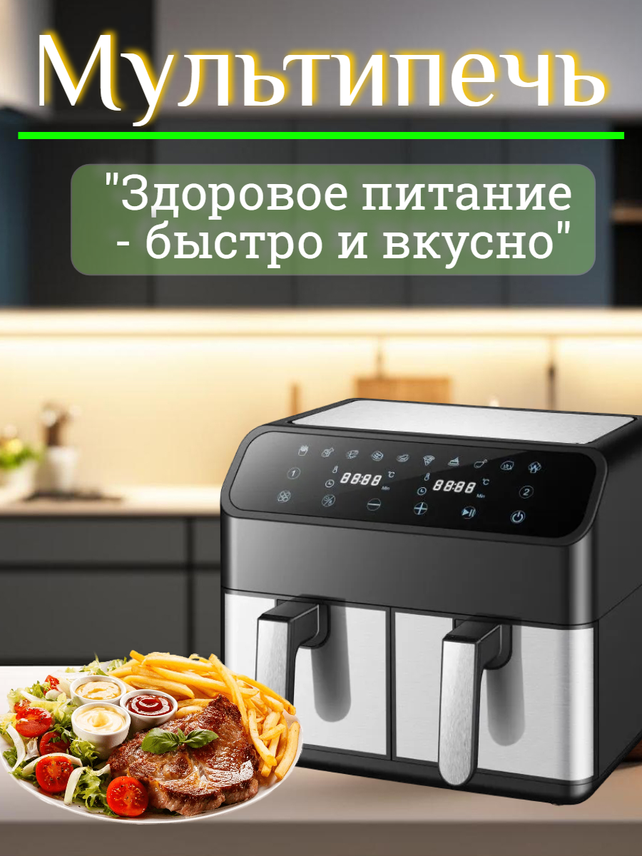 Аэрогриль Аэрогриль электрический 7 литров, с сенсорной панелью, 2400 Вт аэрогриль электрический, черный, серебристый