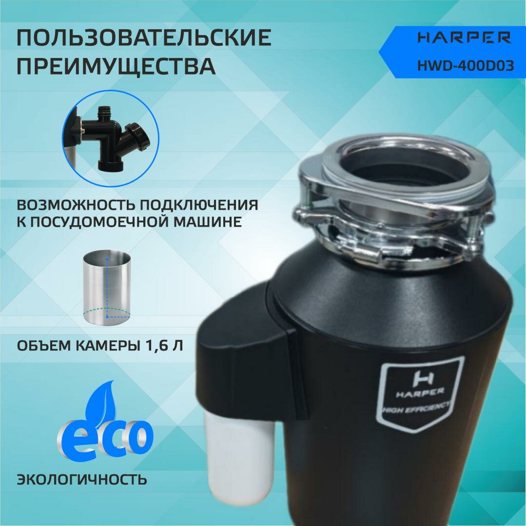 Измельчитель пищевых отходов Harper HWD-400D03 / измельчитель для раковины информация: