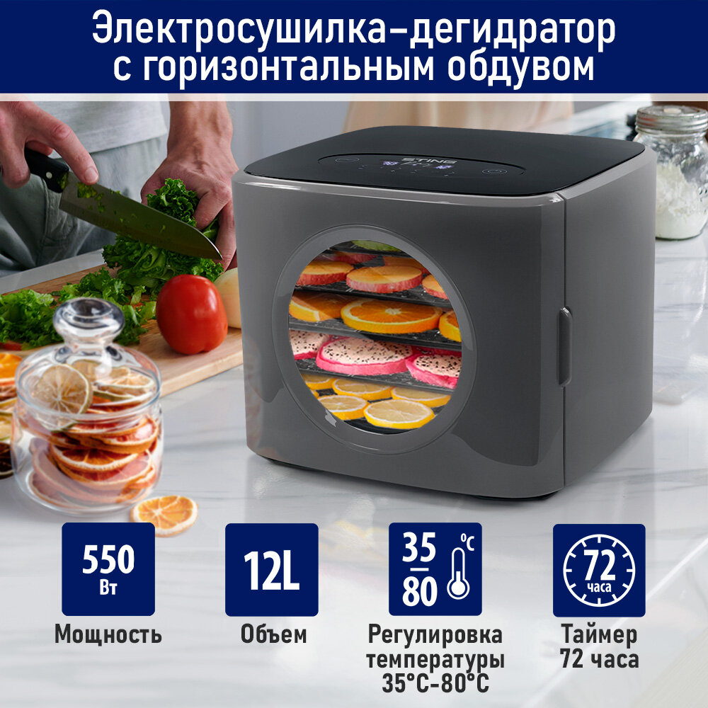 10 цен на STINGRAY ST-FD727A 15 поддонов: 5+5 для ягод+5 для пастилы черный/серый сушилка д/фруктов,овощей