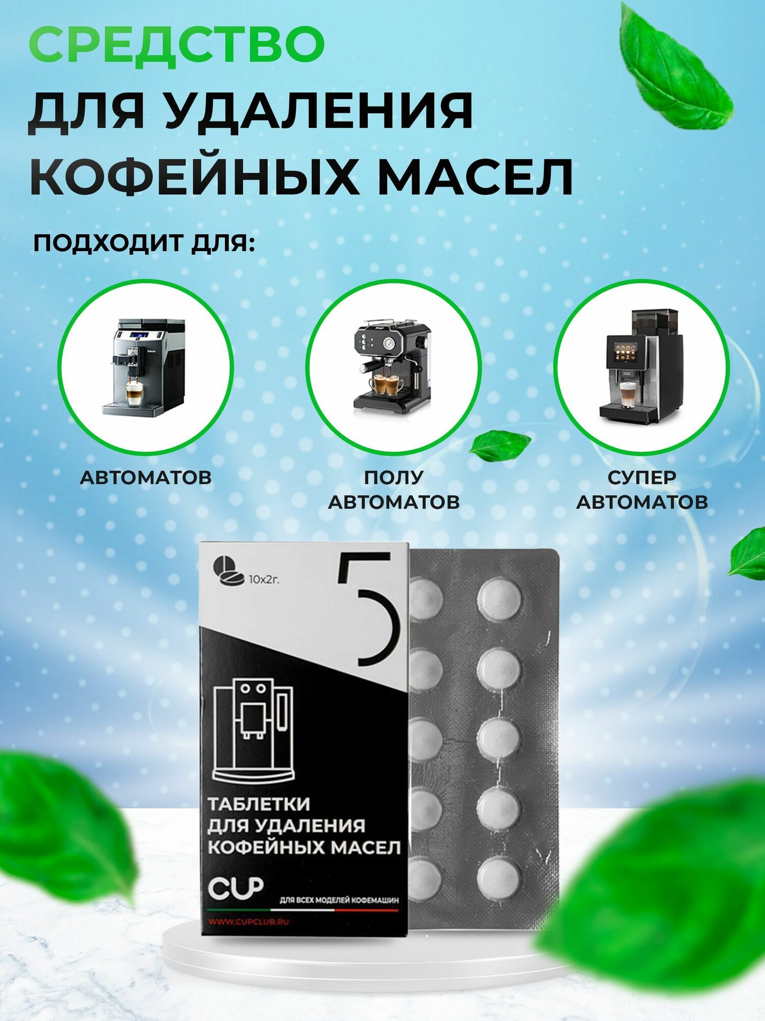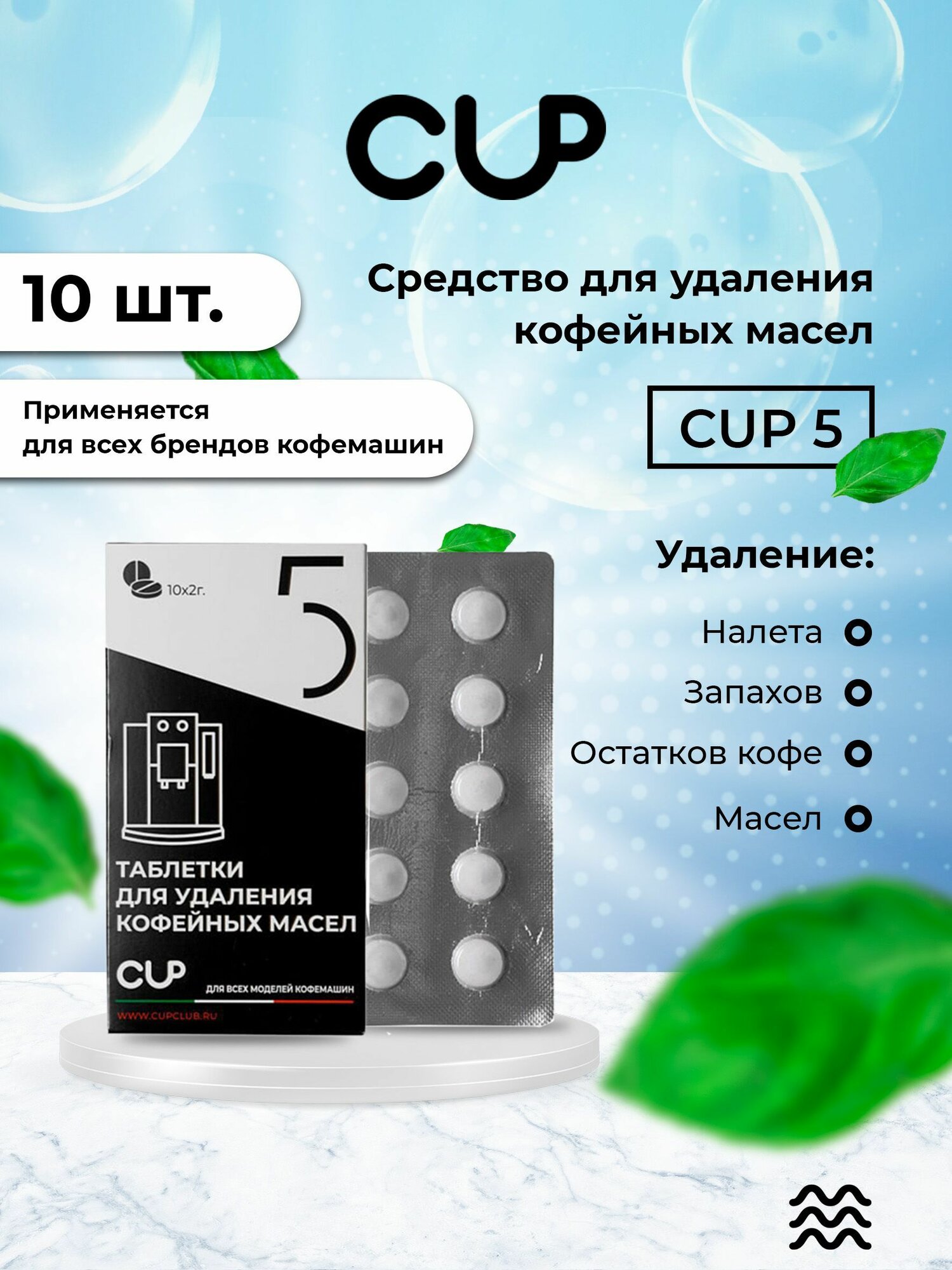 CUP5 Таблетки для удаления кофейных масел в кофемашинах, 10шт информация:
