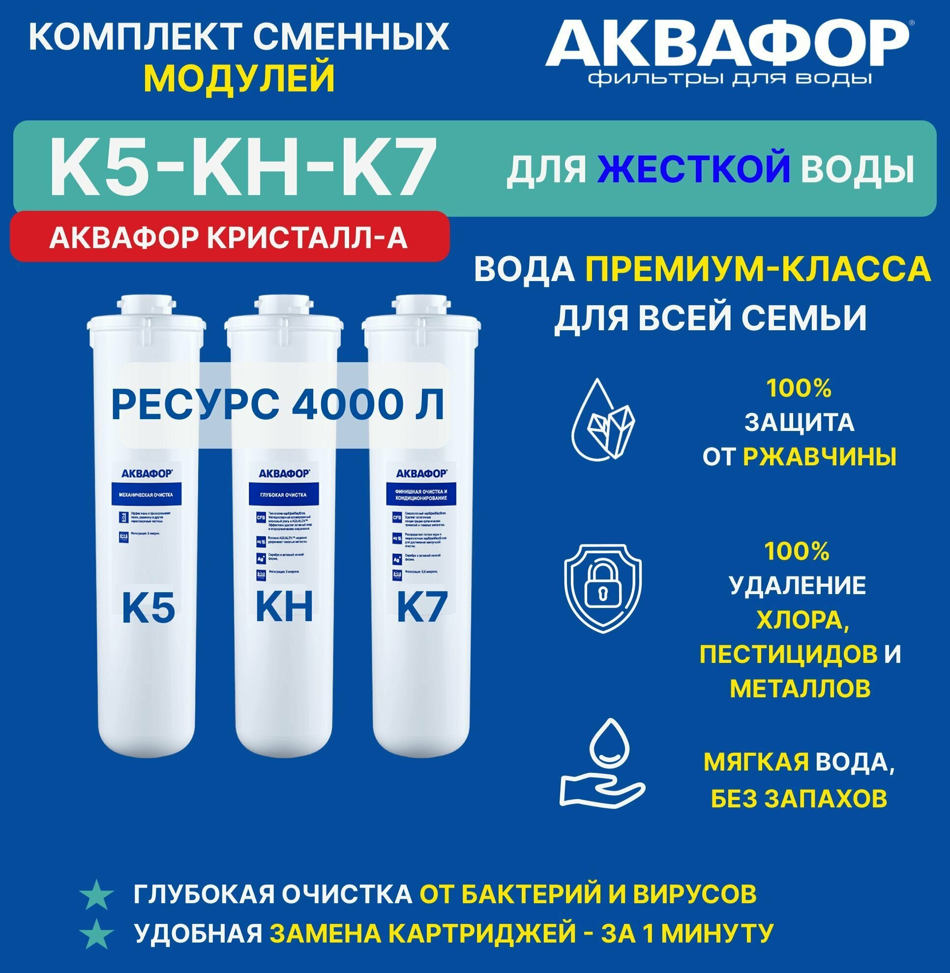 Отзывы на Комплект сменных модулей Аквафор К5-КH-К7, для Кристалл А, на год