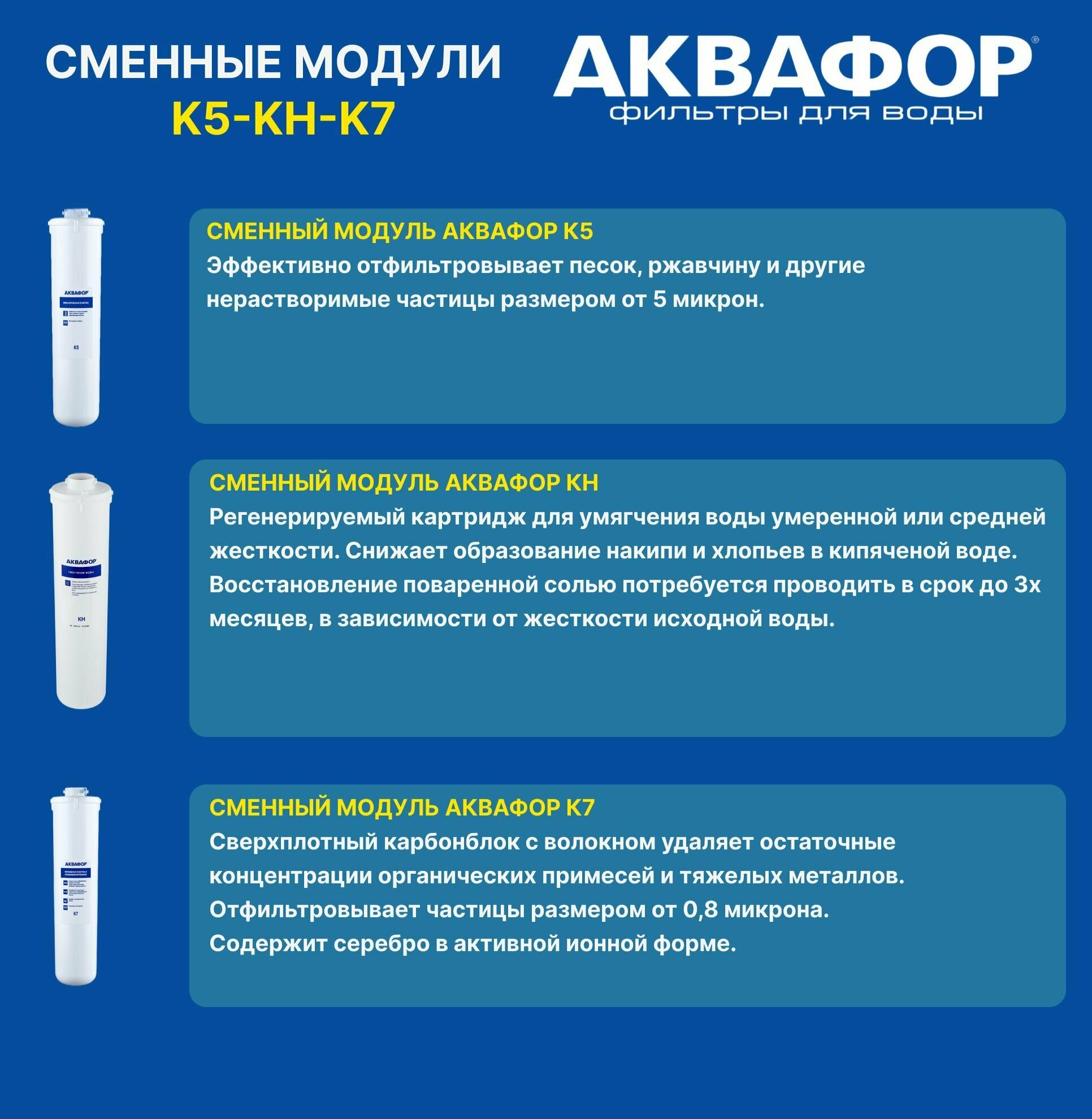 Комплект сменных модулей Аквафор К5-КH-К7, для Кристалл А, на год информация:
