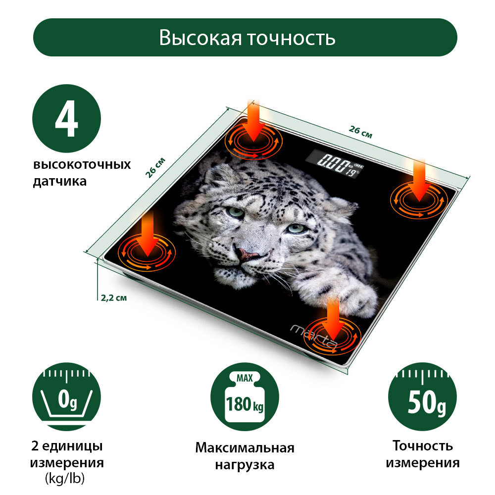MARTA MT-1678 снежный барс весы напольные сенсор, встроенный термометр информация: