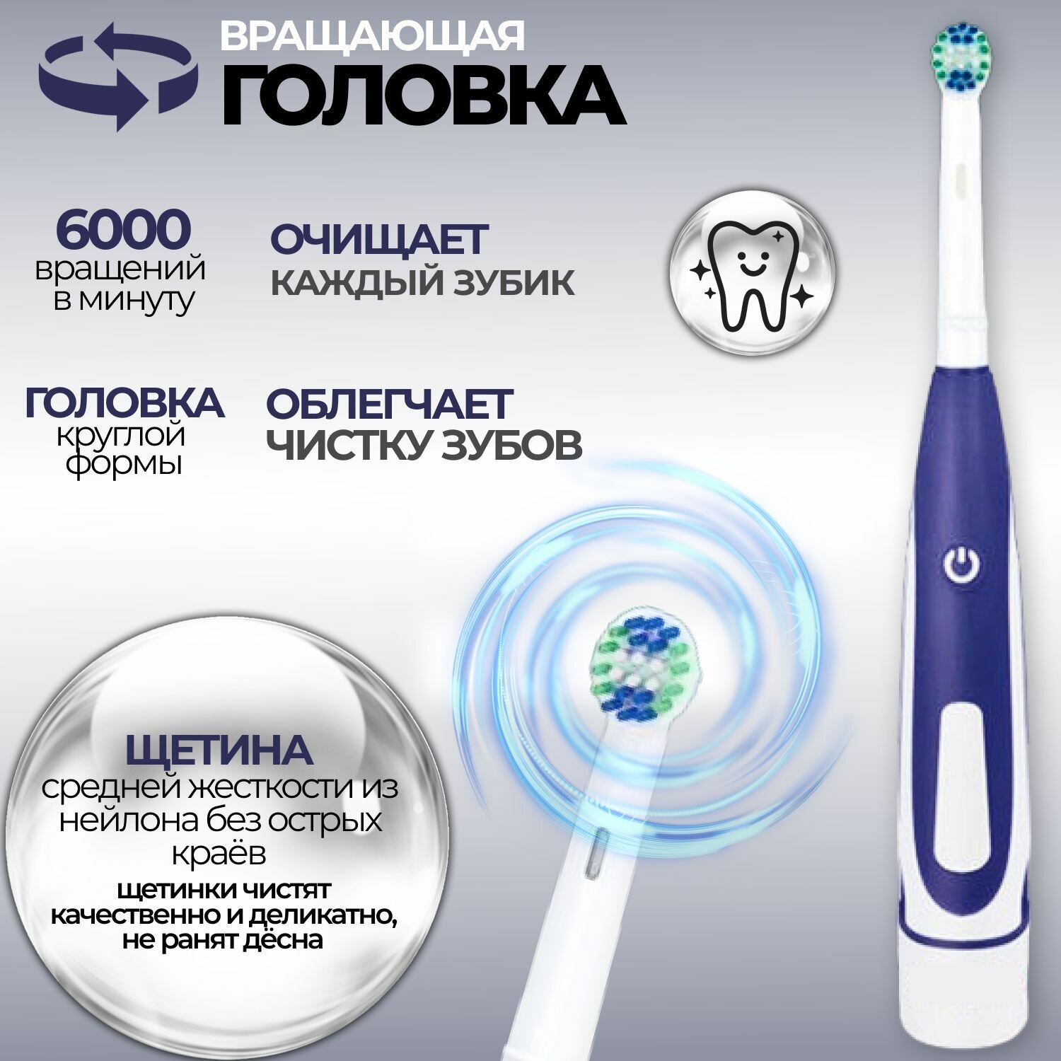 | Форма головки основной насадки щетки | круглая |