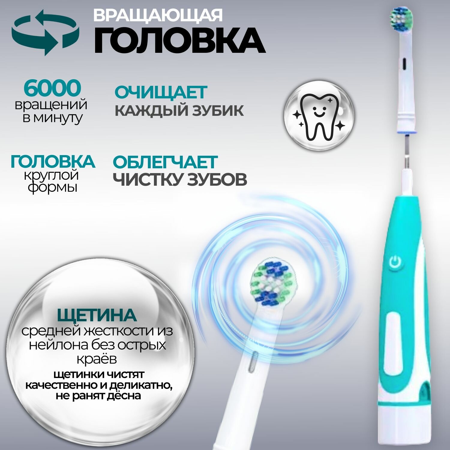 Электрическая зубная щетка взрослая Biksi, с 2 насадками, от 2 батареек АА, бирюзовый информация: