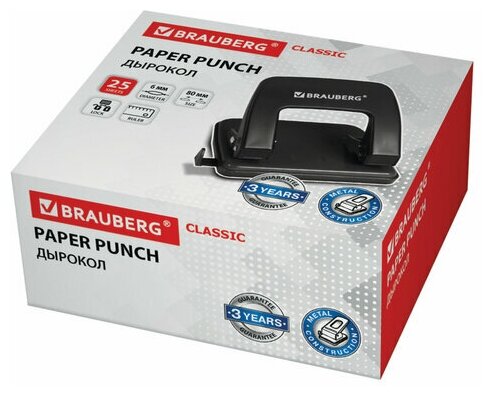 Дырокол металлический BRAUBERG "Classic", до 25 листов, черный, 229697