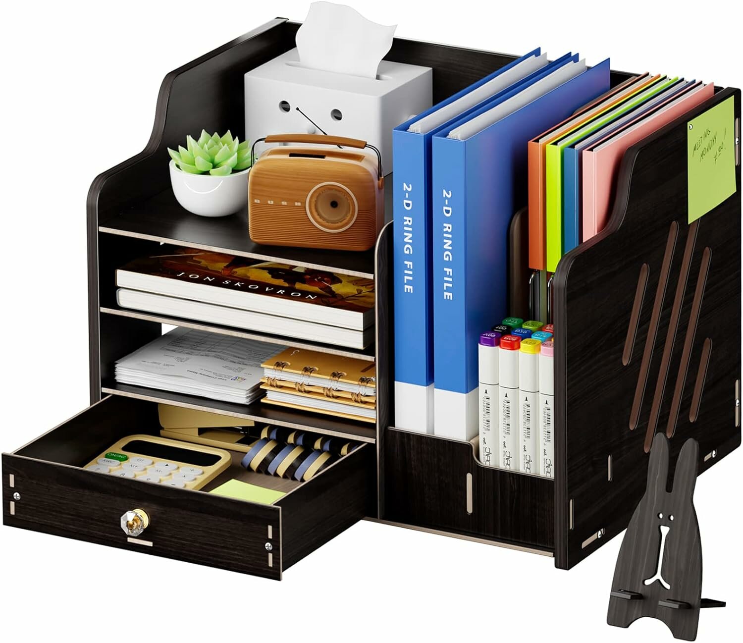 10 цен на Органайзер для документов и бумаг настольный, деревянная подставка для папок и канцелярских принадлежностей