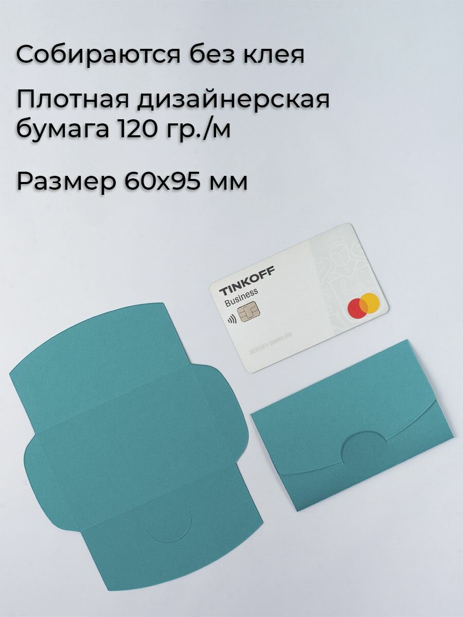 Конверт цветной бумажный мини самосборный 6х9.5см/ Набор мини конвертов бирюзовый 50 шт. информация: