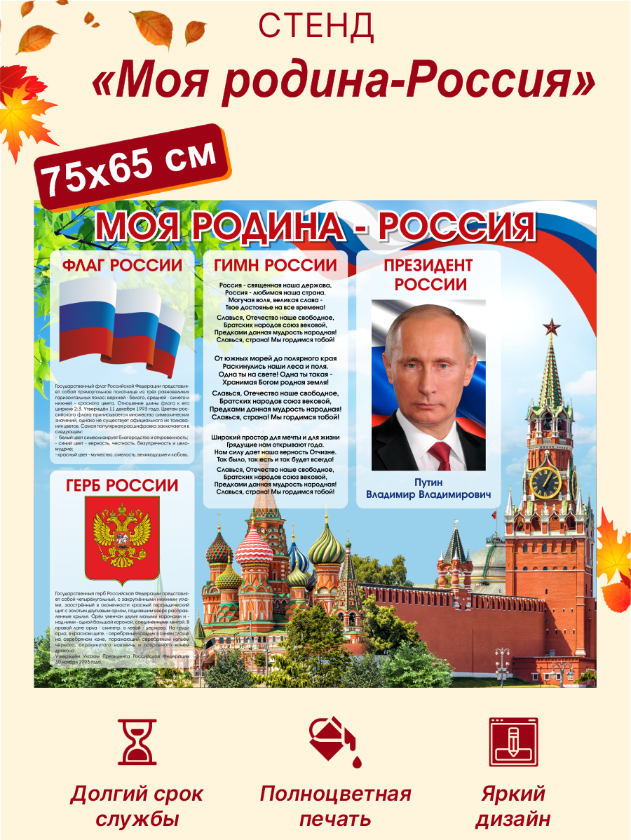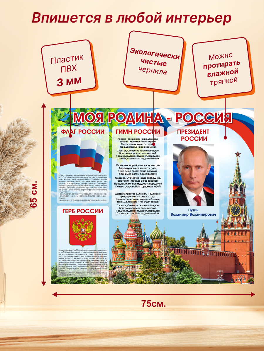 10 цен на Стенд "Моя Родина - Россия" 750х650 мм, Символика РФ, Классный уголок для школы, для детского сада