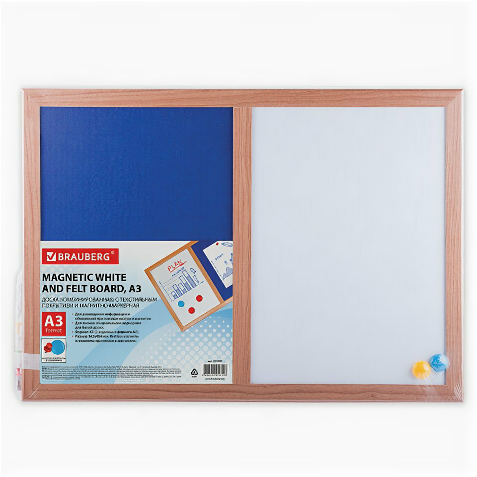Доска магнитно-маркерная 70х50 см, алюминиевая рамка, гарантия 10 ЛЕТ, BRAUBERG, 238185
