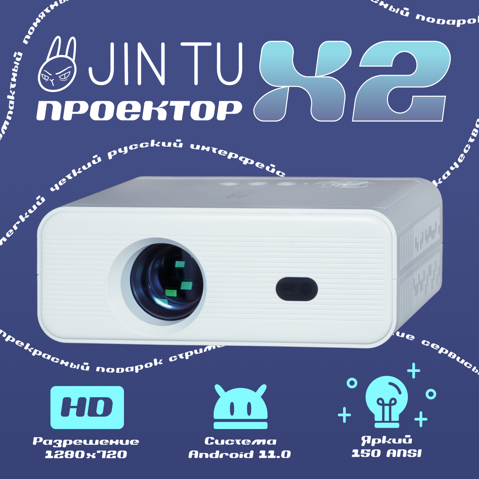 Мультимедийный проектор JIN TU X2 Android 11 HD информация: