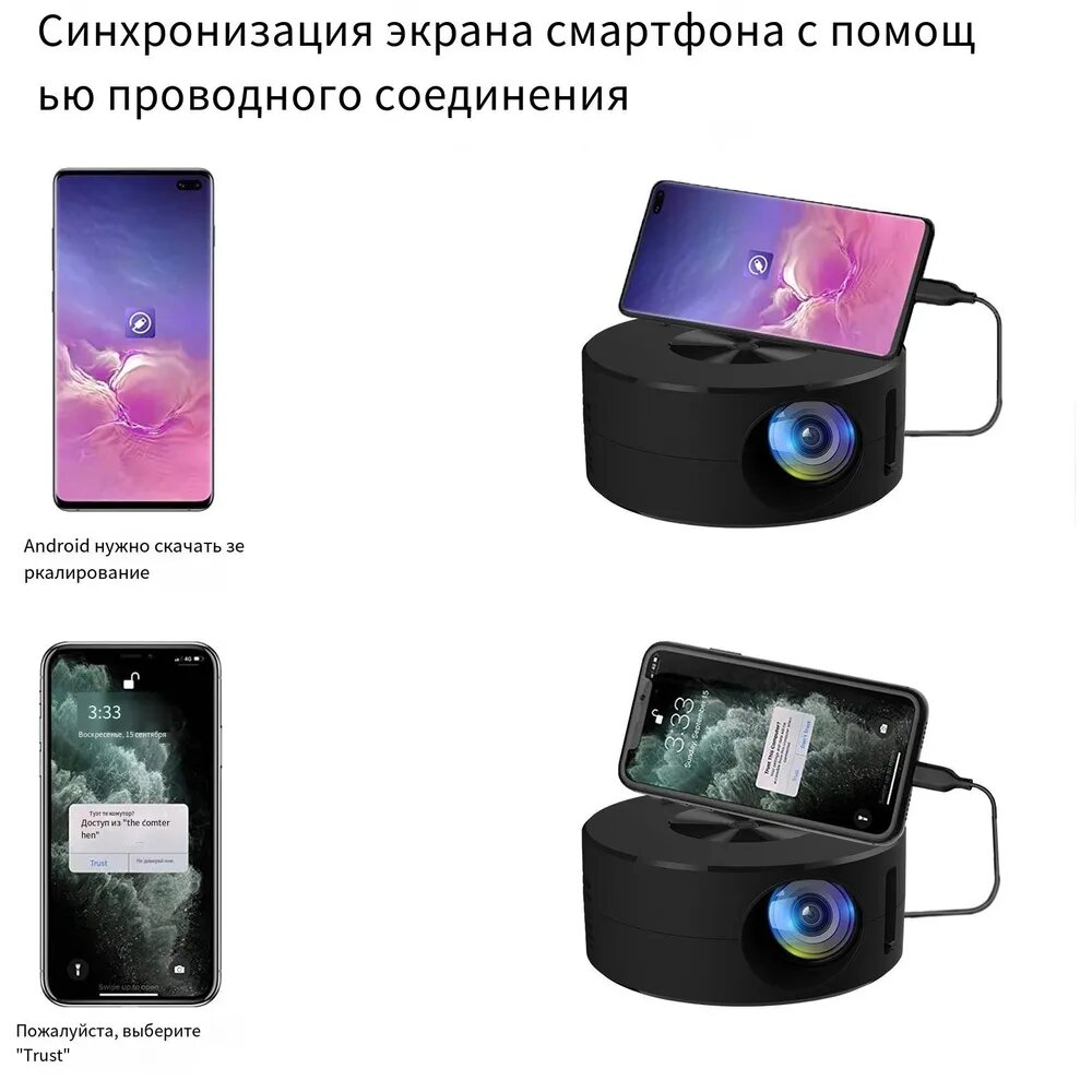 Мини проектор 4К с высоким разрешением 1920х1080 для фильмов и мультфильмов