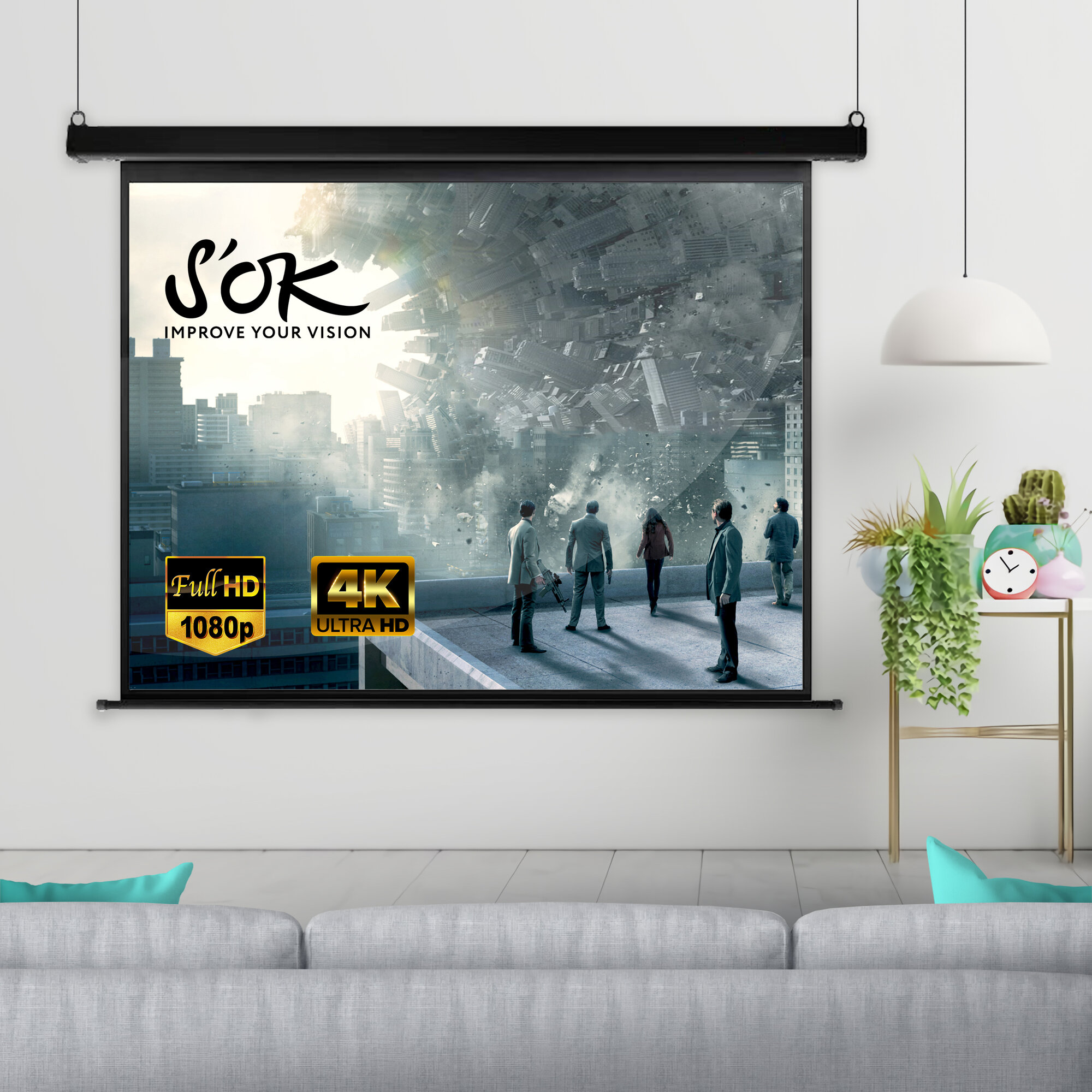 Экран для проектора SOK SCPSW-180x180 100 1:1 настенно-потолочный, ручной, матовый, белый