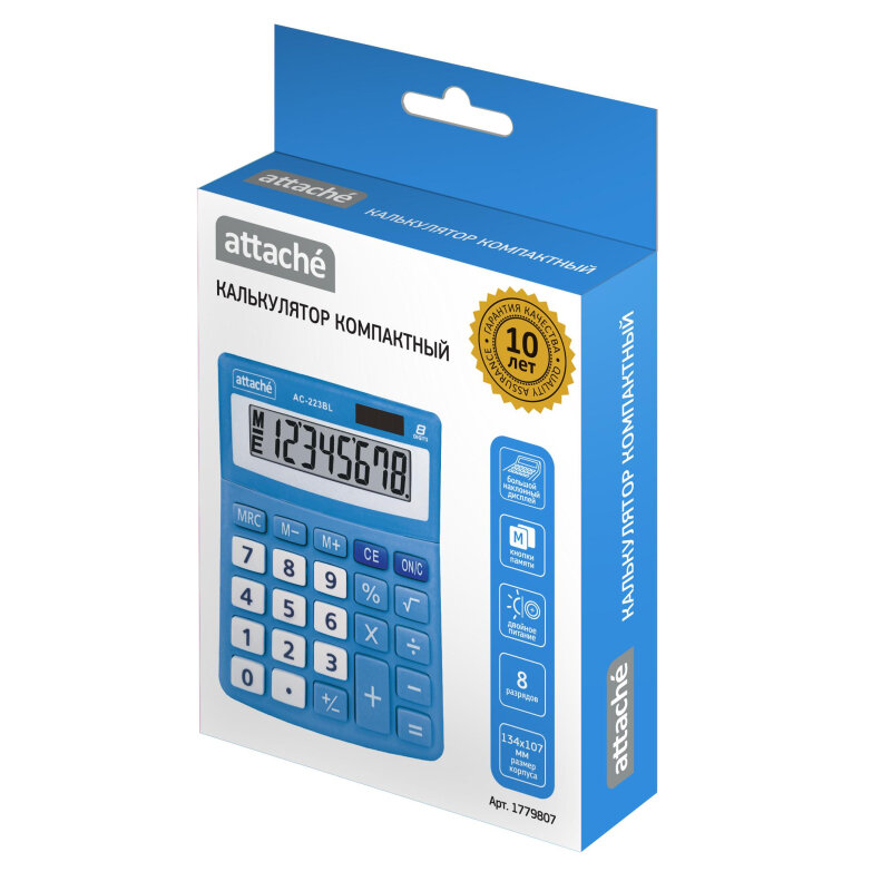 10 цен на Калькулятор настольный комп Attache, AС-223BL,8р,дв. пит, голуб,134x107x34