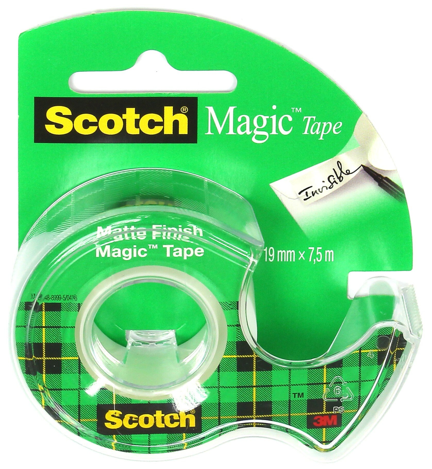 Клейкая лента канцелярская 19 мм х 7,5 м, невидимая, в диспенсере, 56 мкм, SCOTCH "Magic", 70005076974