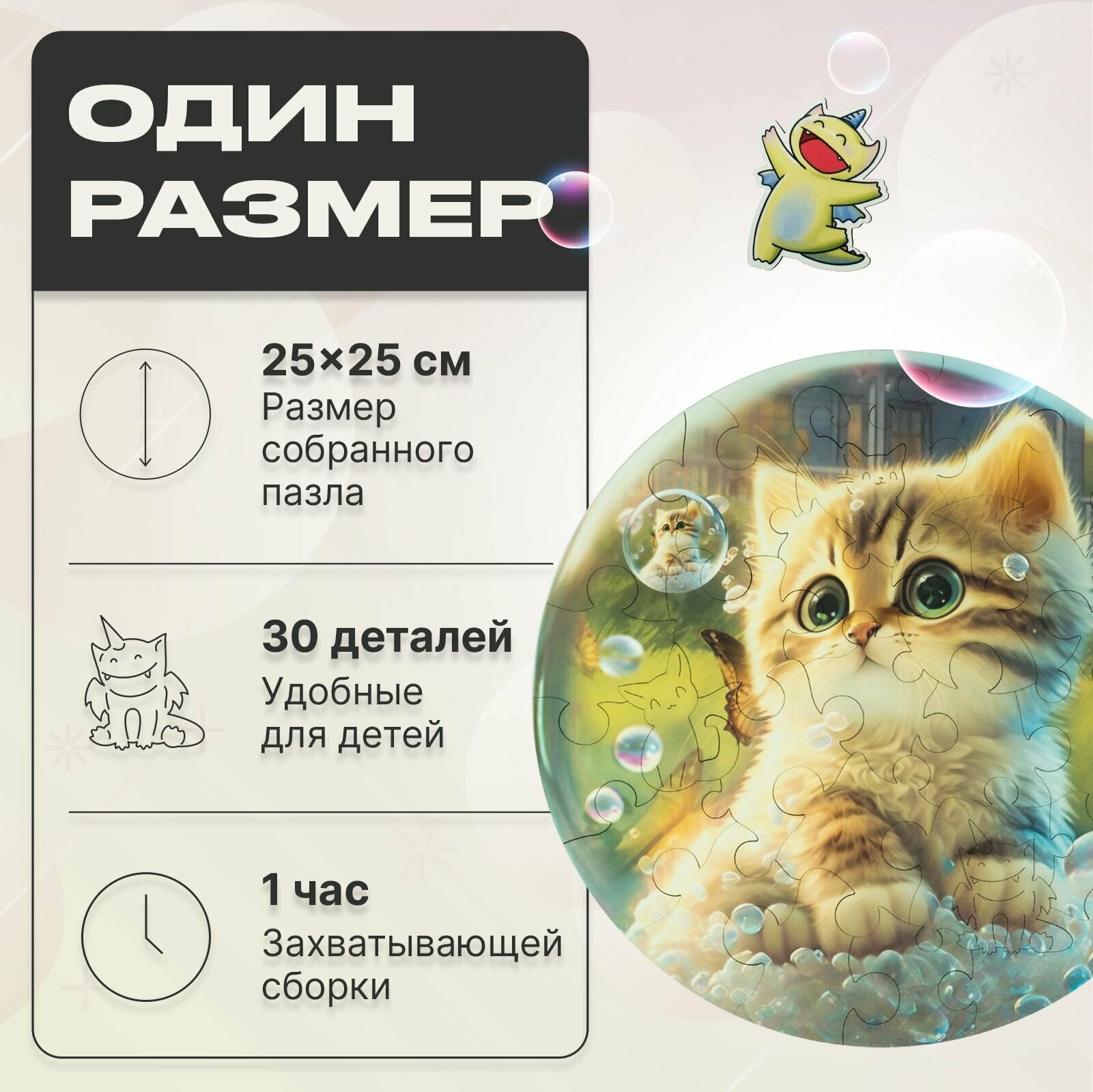 Деревянный пазл для детей UNIDRAGON Original в подарочной коробке / Unidragon Bubblezz Котенок подарок 25 см, 30 деталей, Головоломка информация:
