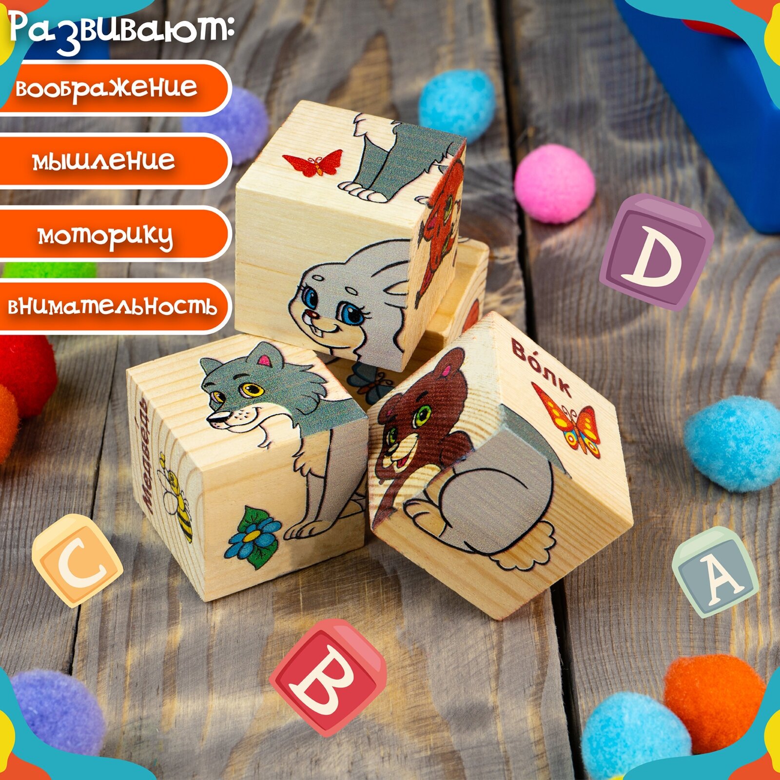 10 цен на Набор кубиков деревянных с животными "Лесная мастерская"
