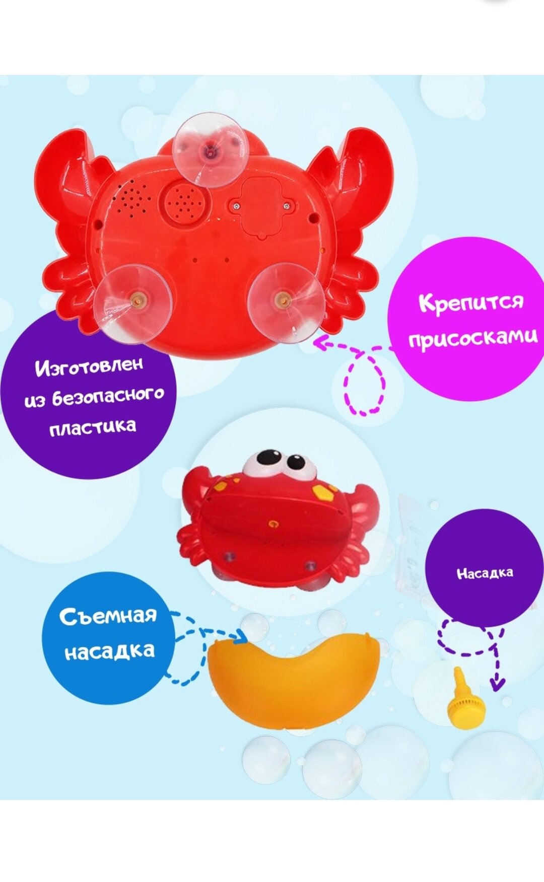 Игрушка для ванной генератор пузырей крабик со звуком информация:
