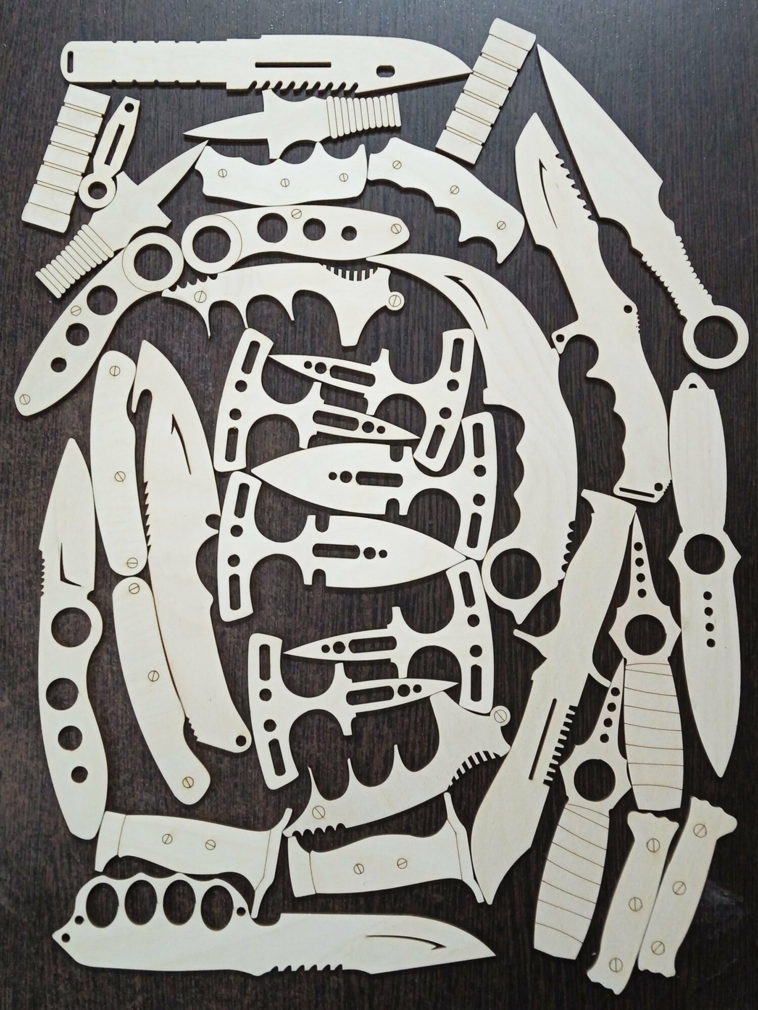 | Комплектация | 12 ножей, накладки на рукоятки к ним, клей, наждачная бумага. |